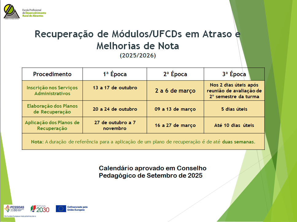 Calendário de Épocas de Recuperação de Módulos em Atraso
